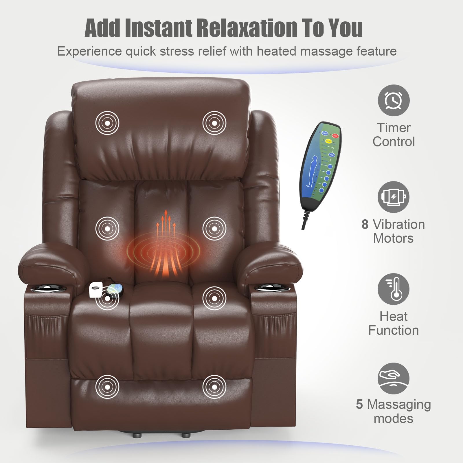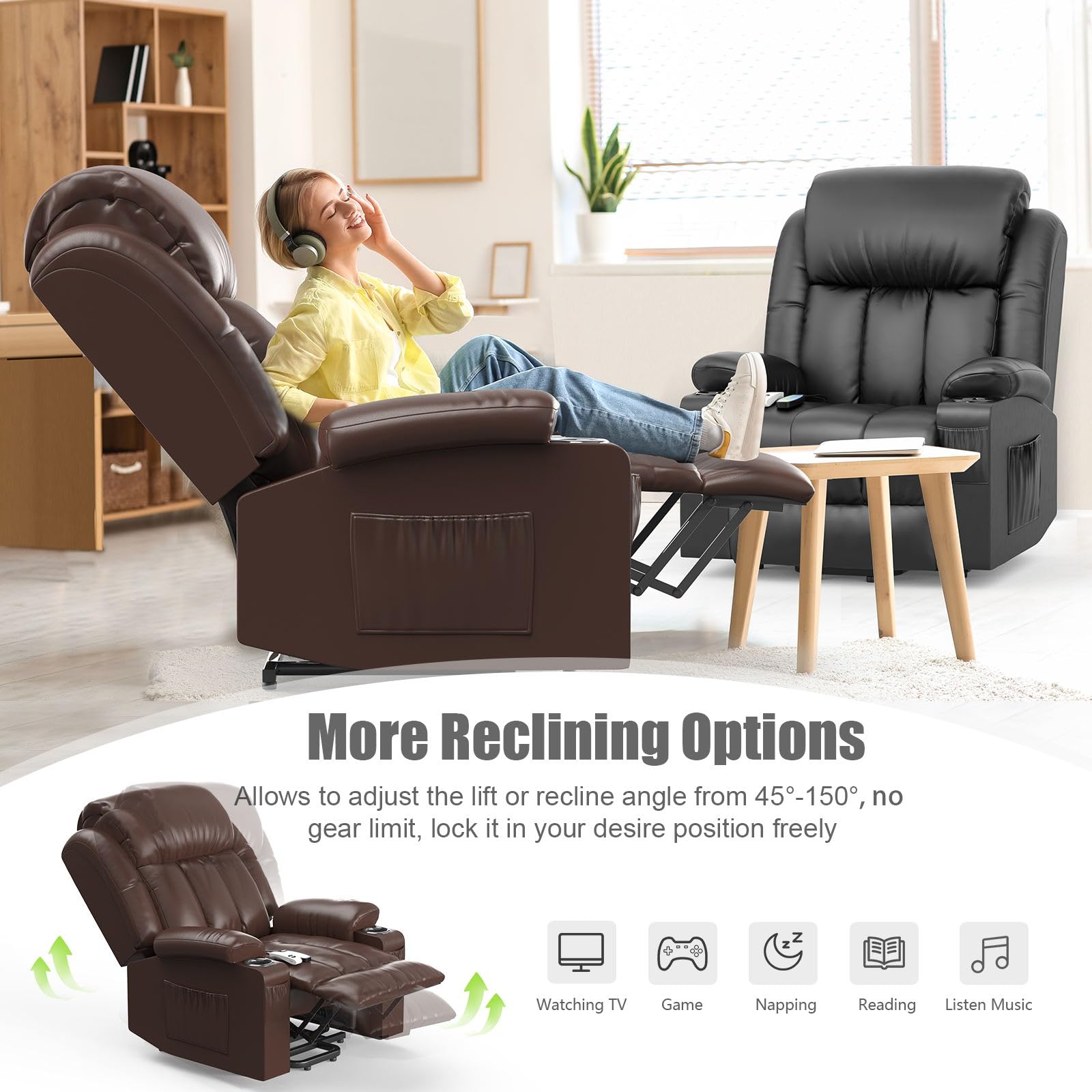 YONISEE Elektrischer Massagesessel mit Aufstehhilfe, Heizung, Massage, USB/Typ-C, Getränkehalter, 4 Taschen, Relaxsessel fürs Wohnzimmer.